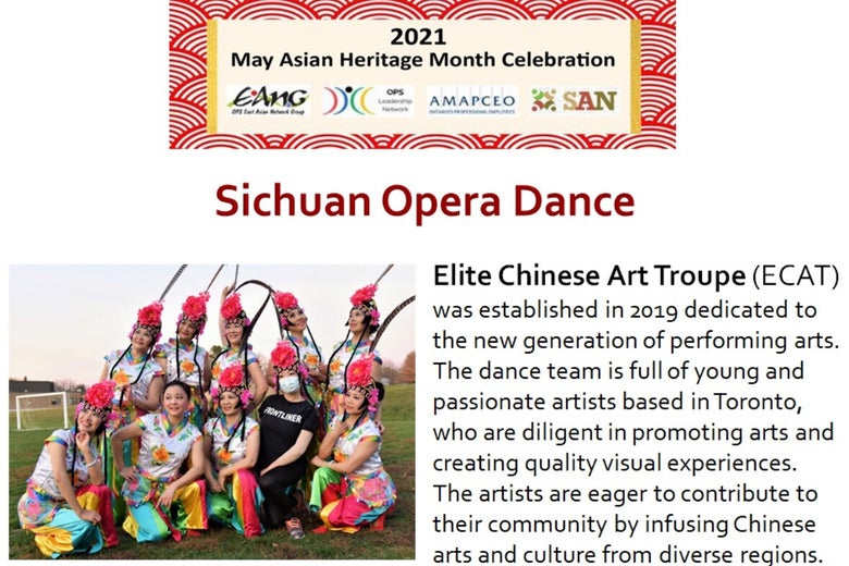 In May 2021, ECAT was invited to participate in the video performance of Asian Activities Month in May, and the participating "Sichuan Opera Dance" received unanimous praise.